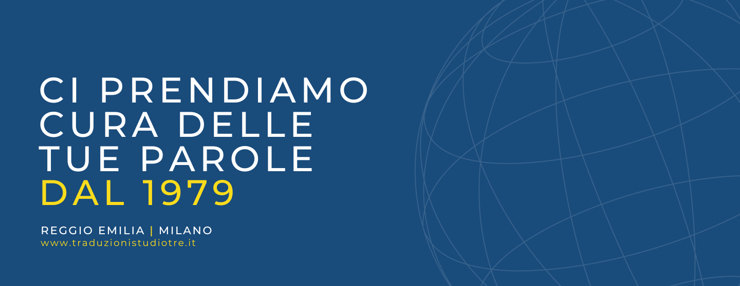 Da più quarant’anni Studio Tre è il consulente linguistico delle eccellenze italiane nel mondo e si prende cura delle loro parole grazie a una formula che combina competenze globali e locali, tecnologia all’avanguardia, riservatezza e soluzioni linguistiche per contenuti tradizionali e digitLe nostre radici sono a Reggio Emilia ma il nostro lavoro, traduzioni e interpretariati in 75 lingue, ci porta a essere senza confini.